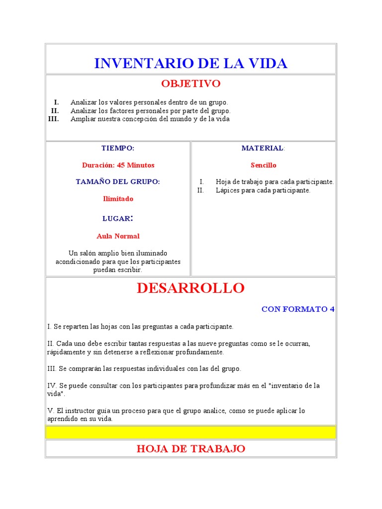 INVENTARIO DE LA VIDA