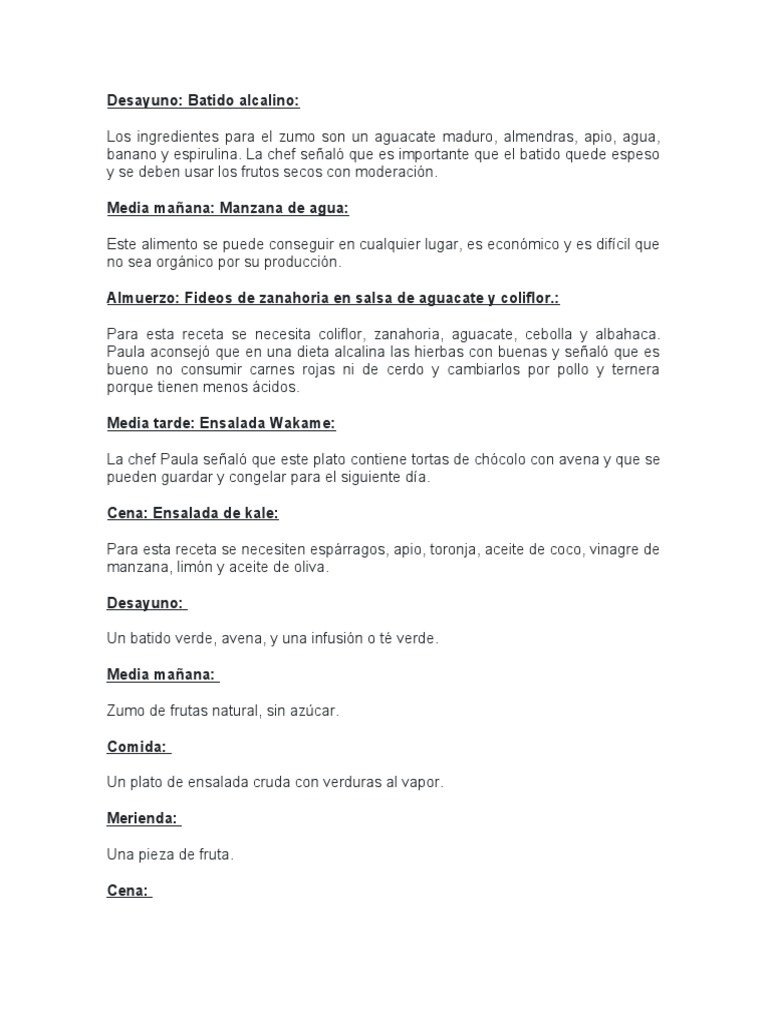 Paula aconsejó que en una dieta alcalina las hierbas con buenas y señaló que es