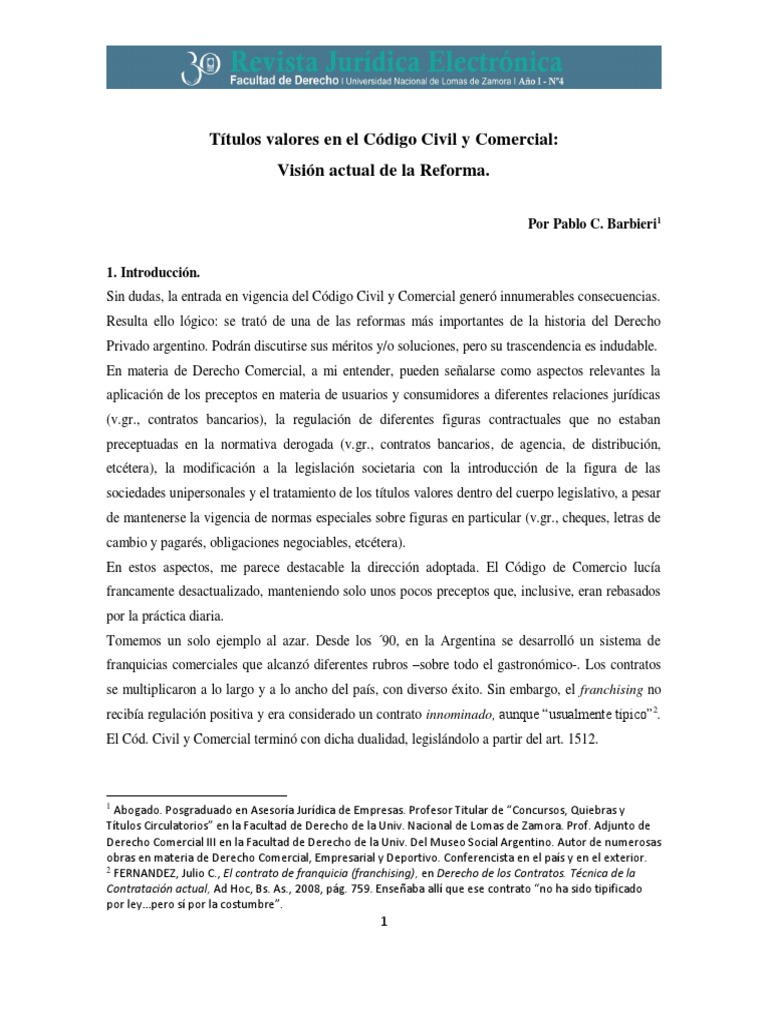 BARBIERI, Pablo C., Títulos Valores en el Código Civil y Comercial, 20XII Grupo Editorial, Bs. As., 2015, pág.