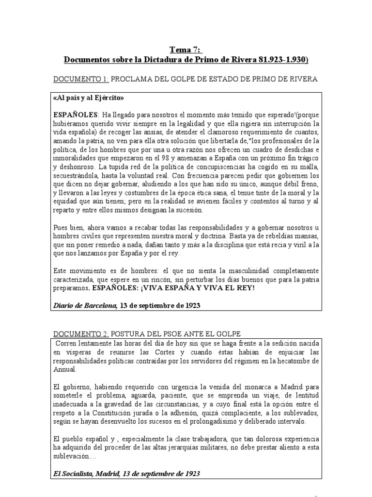 DOCUMENTO 1: PROCLAMA DEL GOLPE DE ESTADO DE PRIMO DE RIVERA