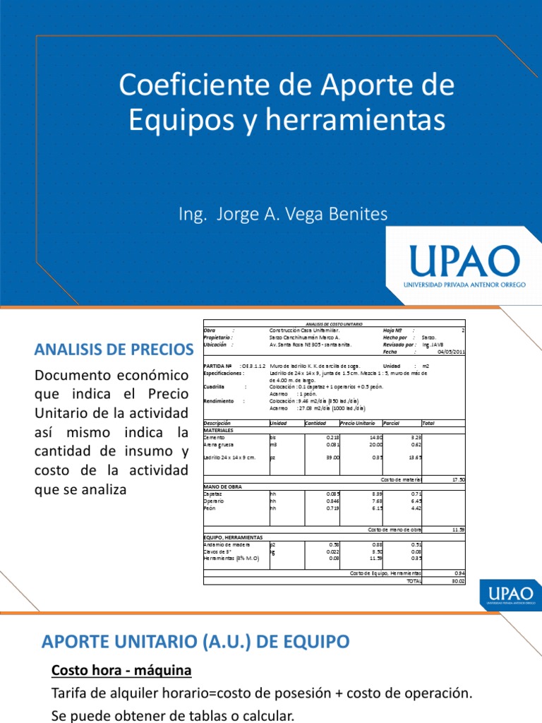 APORTE UNITARIO (A.U.) DE HERRAMIENTAS