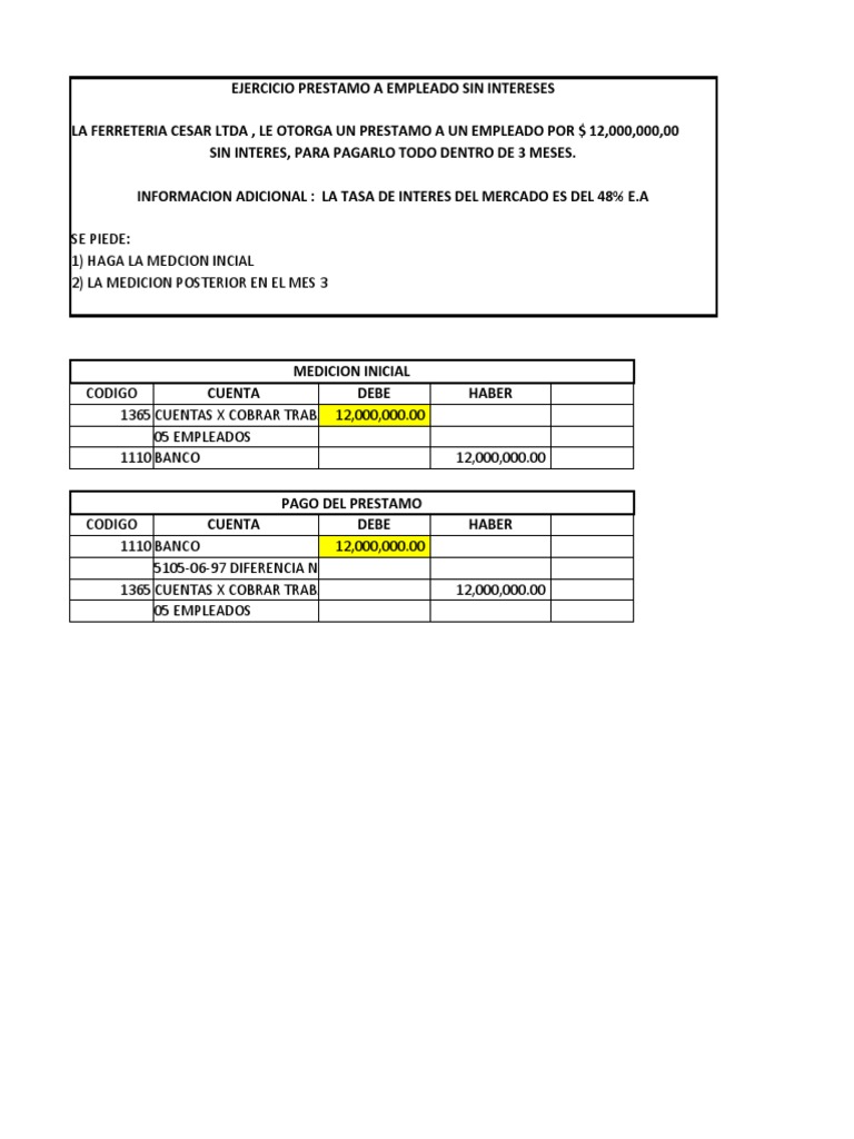 EJERCICIO PRESTAMO A EMPLEADO SIN INTERESES
