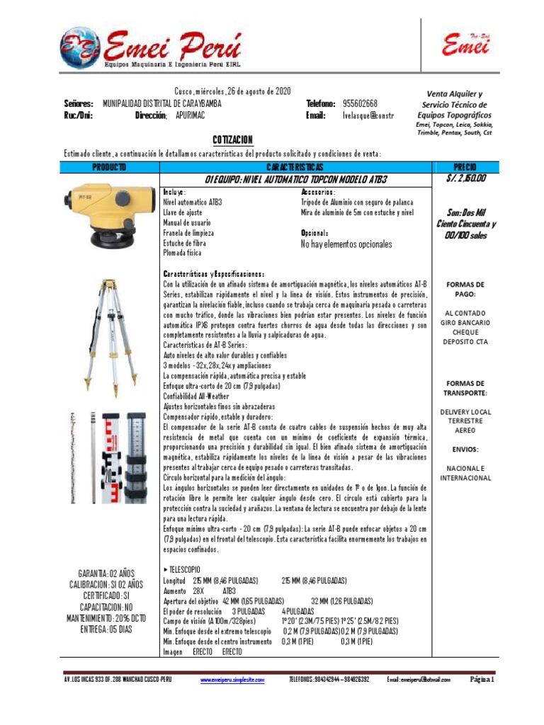 Ruc/Dni: Dirección; APURIMAC Email: lvelasque@constr Equipos Topográficos