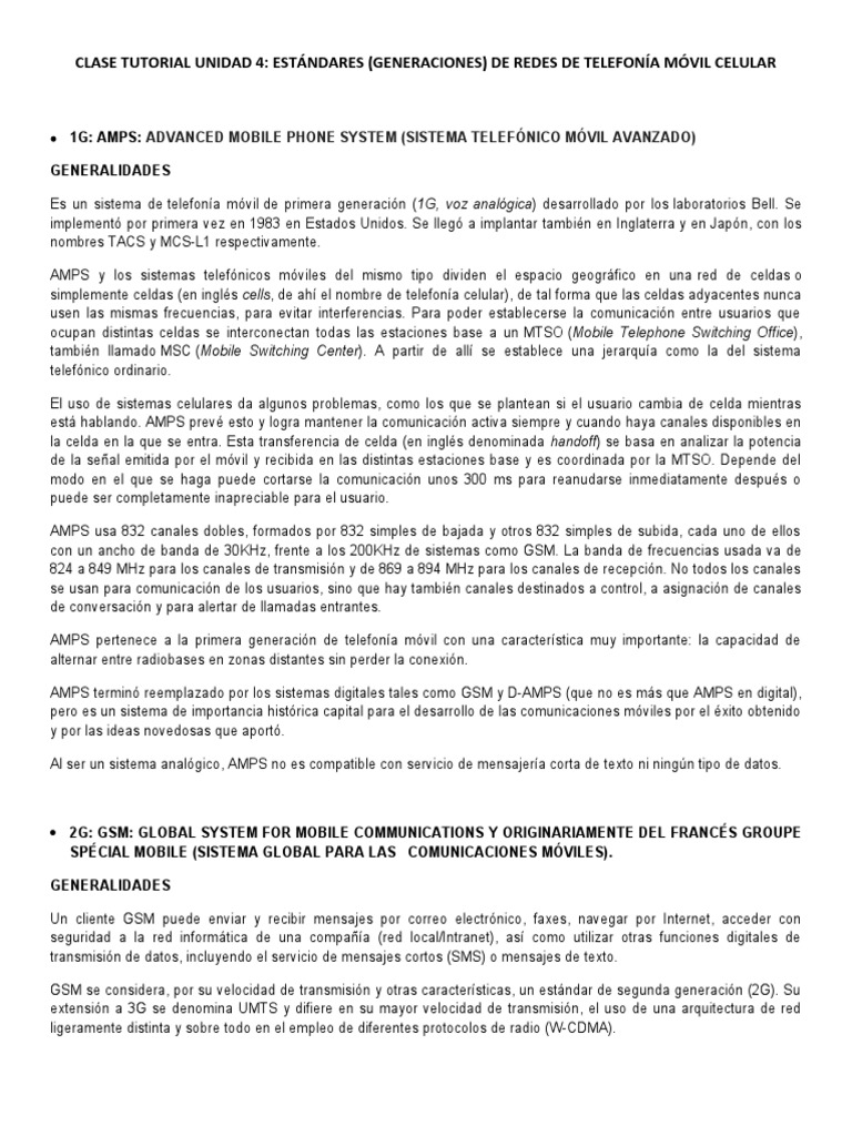 CLASE TUTORIAL UNIDAD 4: ESTÁNDARES (GENERACIONES) DE REDES DE TELEFONÍA MÓVIL CELULAR