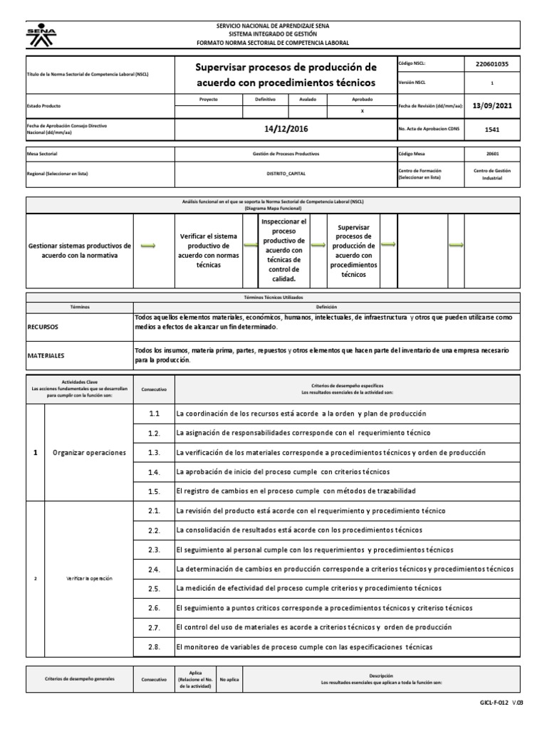 La norma fue avalada en el Consejo Ejecutivo de la Mesa Sectorial conformado por Representantes de: Código NSCL: