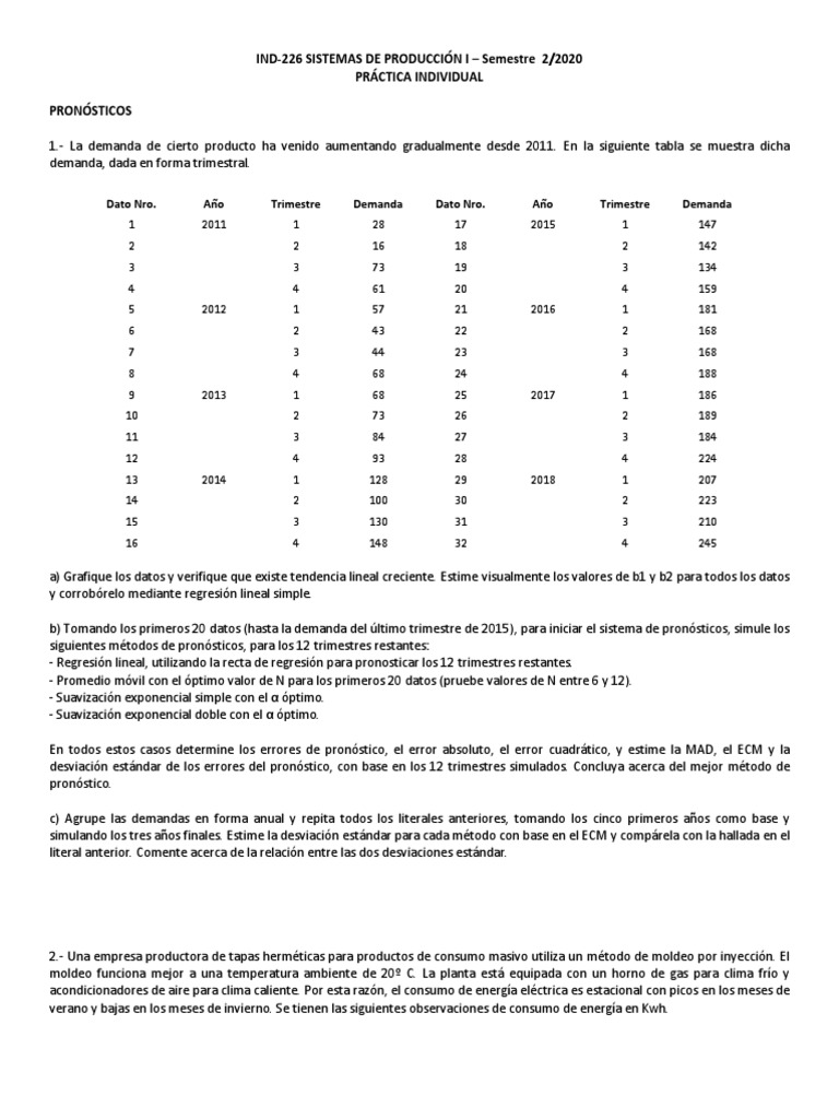 1.- La demanda de cierto producto ha venido aumentando gradualmente desde 2011. En la siguiente tabla se muestra dicha