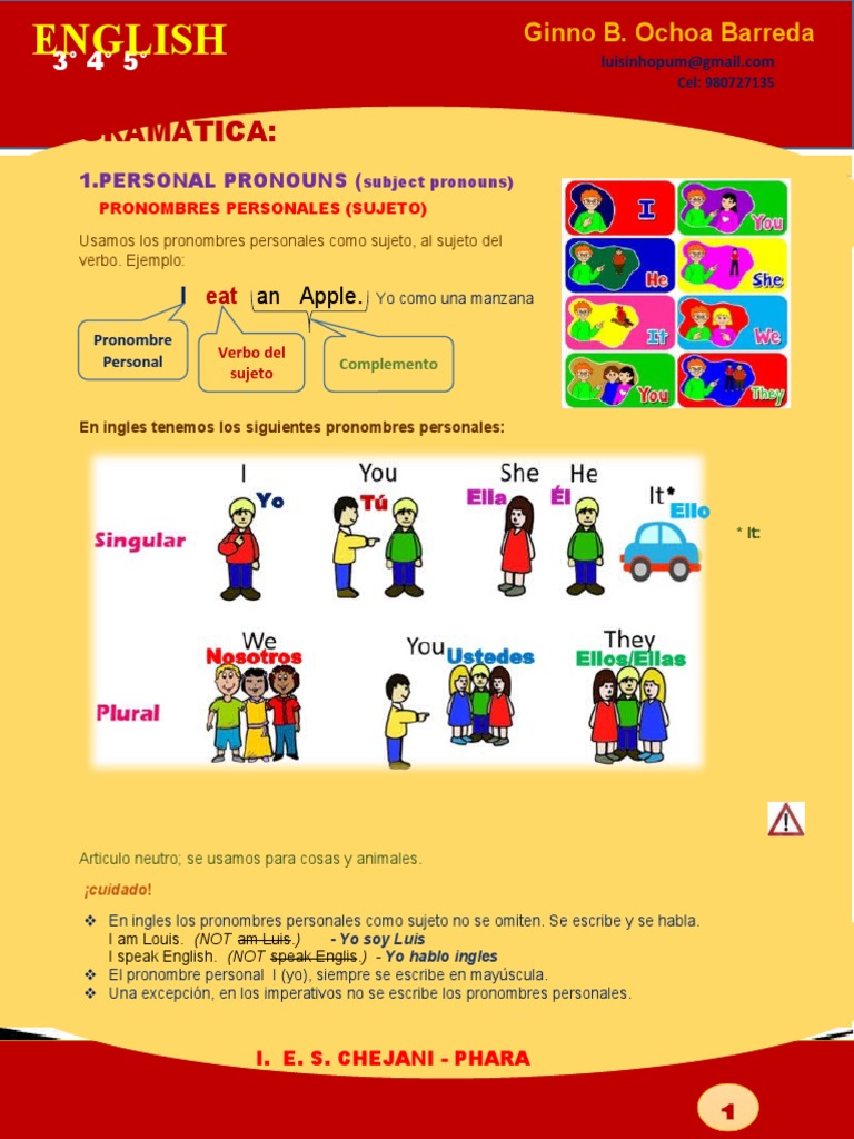 I speak English. (NOT speak Englis.) - Yo hablo ingles
