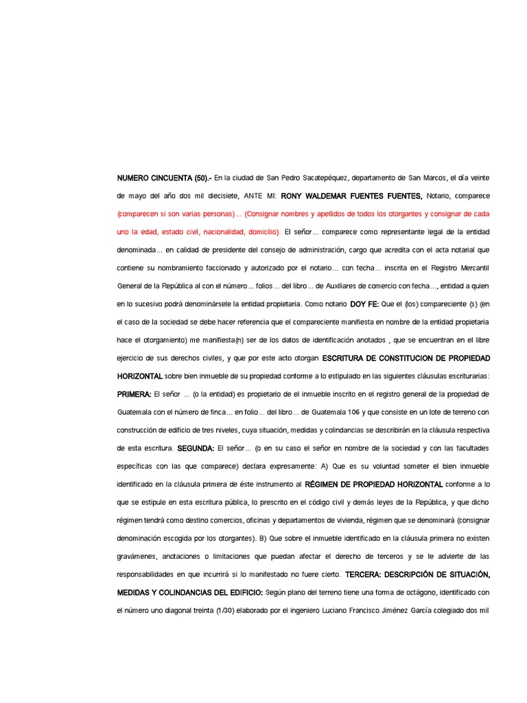 ejercicio de sus derechos civiles, y que por este acto otorgan ESCRITURA DE CONSTITUCION DE PROPIEDAD