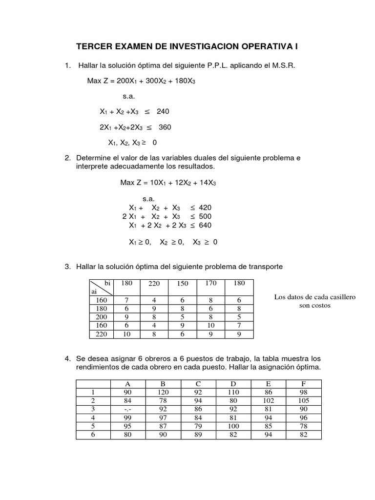 TERCER EXAMEN DE INVESTIGACION OPERATIVA I