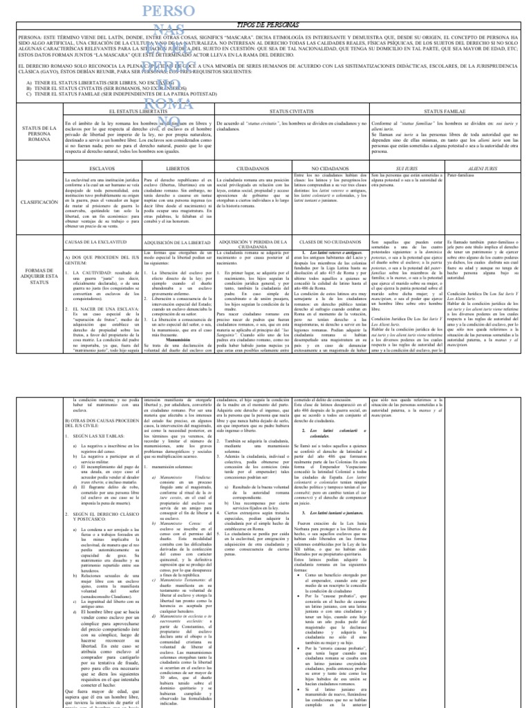 DERECHOS capacidad jurídica, ya personal, ya sola clase de manumitidos, como en de carácter privado: Se denominaban así a los habitantes de Pero en algunos casos se veía antiguo sobre los hijos de familia los