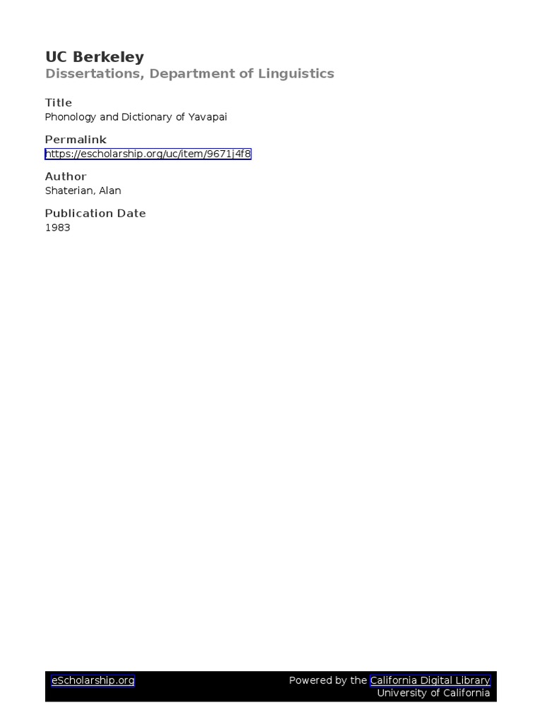 YAVAPAI PHONOLOGY AND DICTIONARY