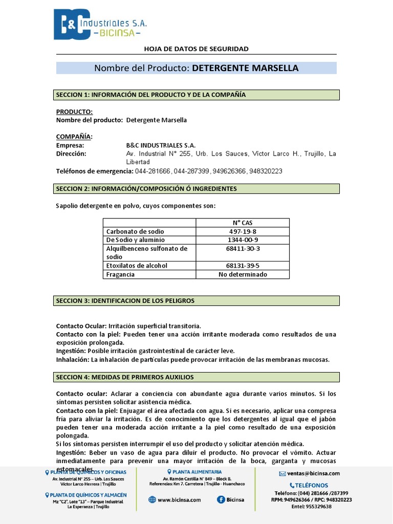 Nombre del Producto: DETERGENTE MARSELLA