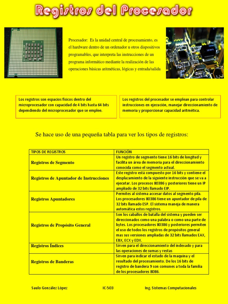 Los registros son espacios físicos dentro del Los registros del procesador se emplean para controlar