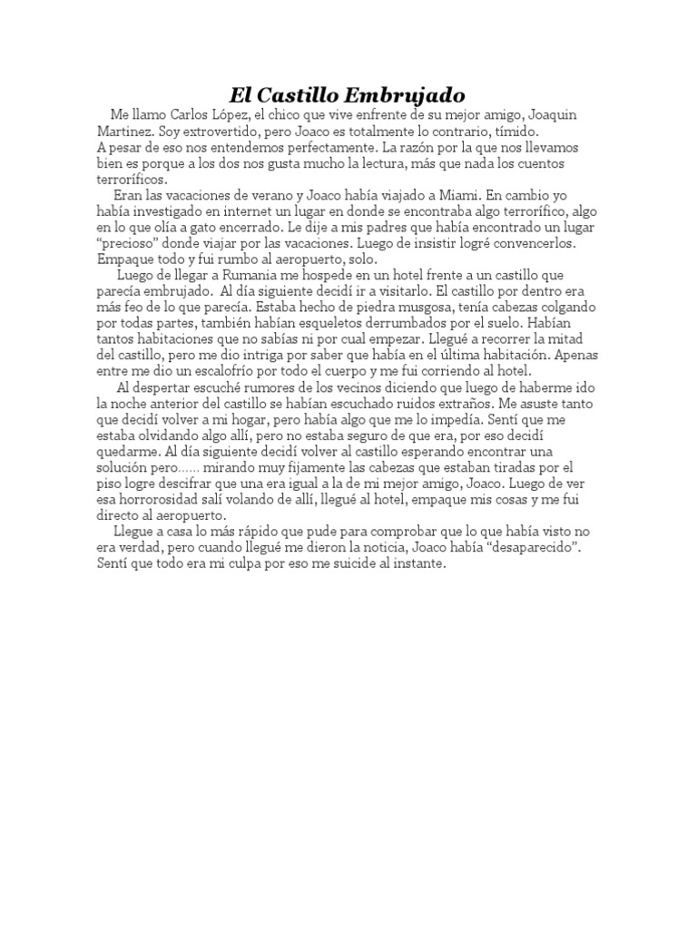 la noche anterior del castillo se habían escuchado ruidos extraños. Me asuste tanto