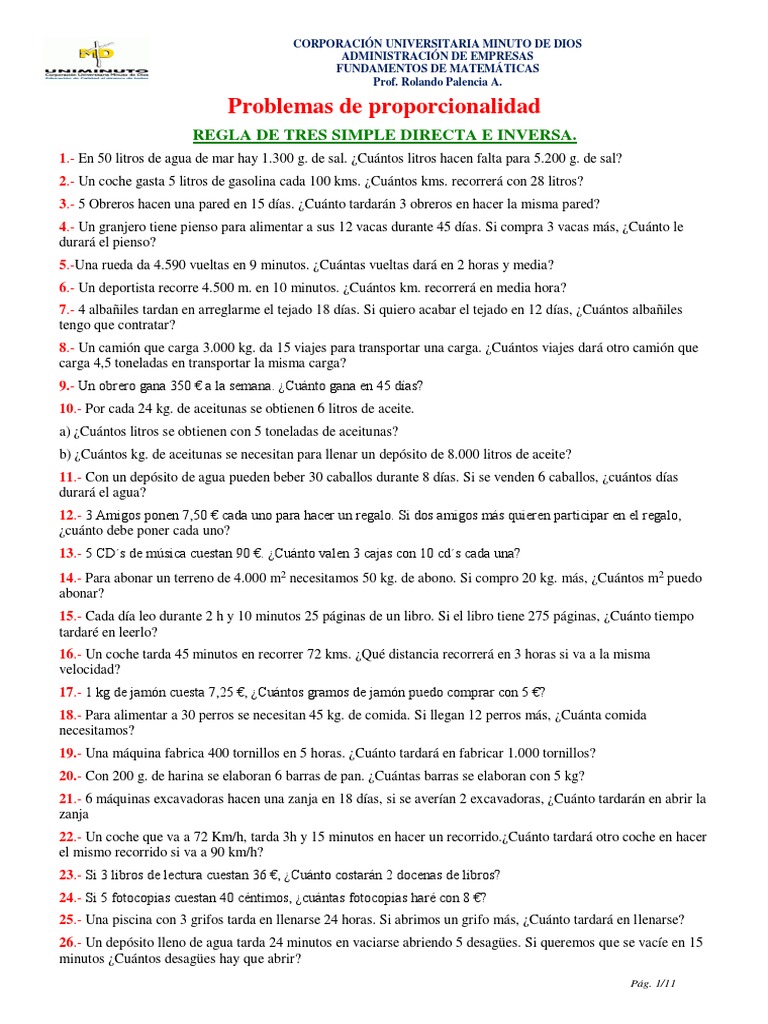 REGLA DE TRES SIMPLE DIRECTA E INVERSA.