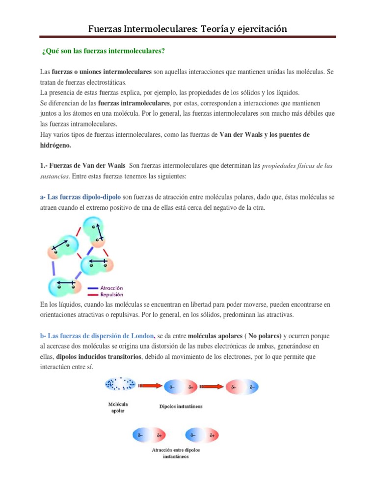 Fuerzas Intermoleculares: Teoría y ejercitación