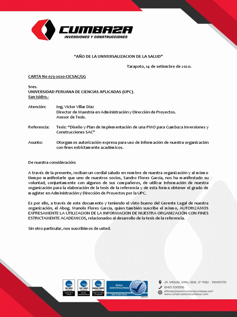 Referencia: Tesis: “Diseño y Plan de Implementación de una PMO para Cumbaza Inversiones y