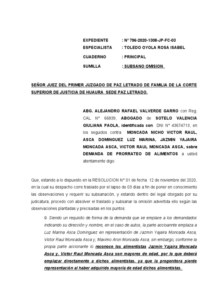 Asca y, Victor Raul Moncada Asca son mayores de edad, por lo que deberá