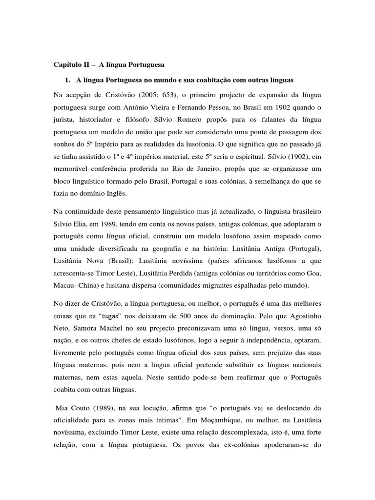 mesma esteira, Cristóvão advoga que para os cinco países africanos, o português é a