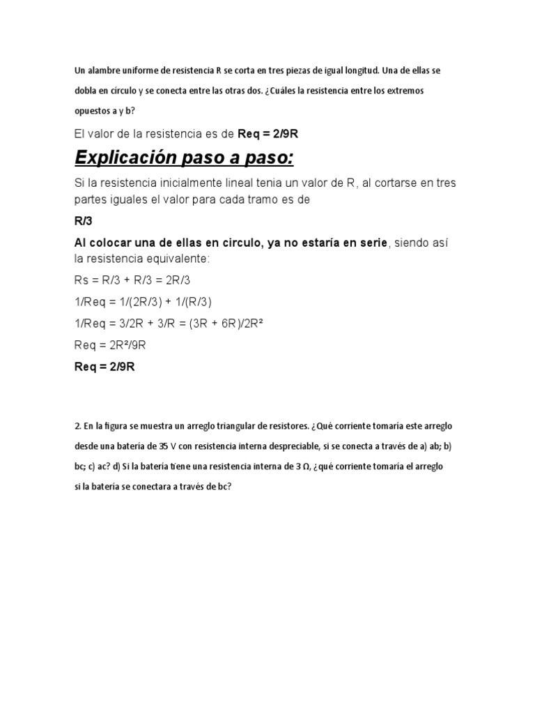 Un alambre uniforme de resistencia R se corta en tres piezas de igual longitud.