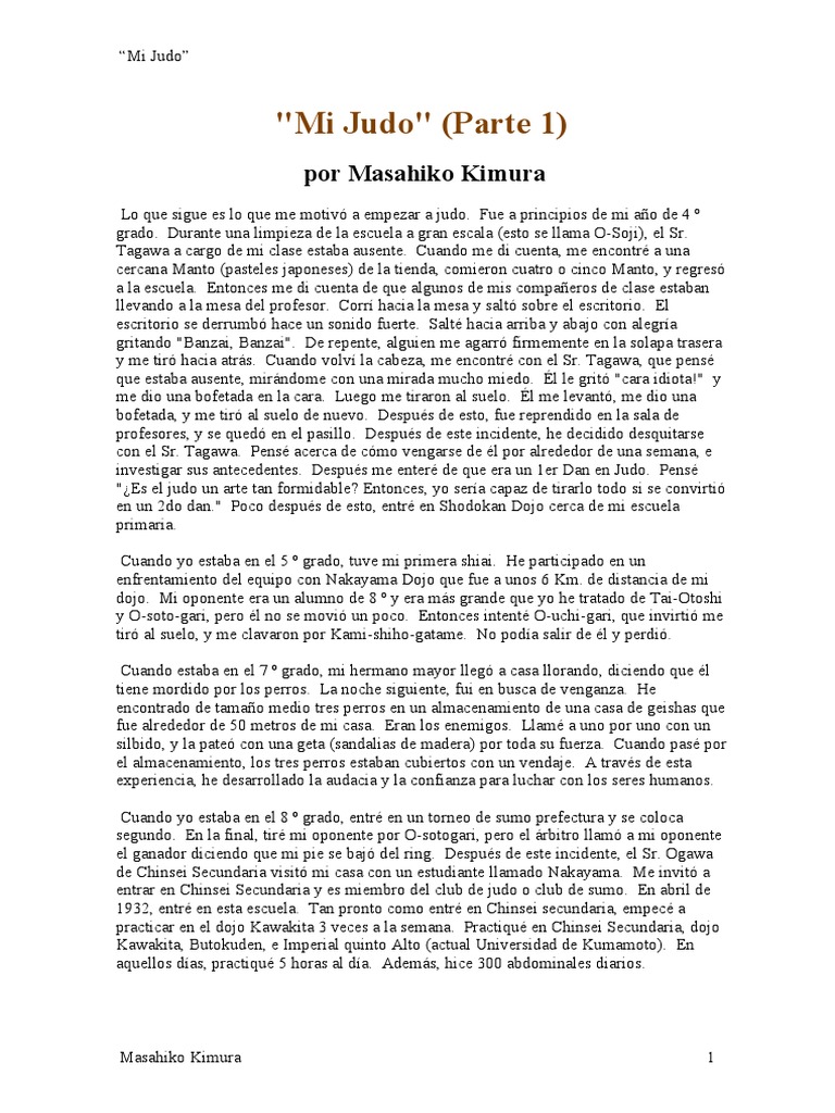 Nota: Este extracto del libro "Mi Judo" fue traducido del original en japonés por pdeking