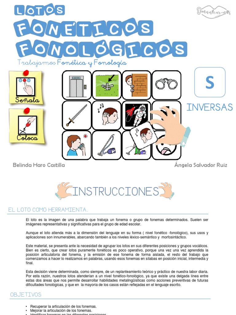 LOTO FONÉTICO. FONEMA EN SÍLABA INVERSA. Posición inicial