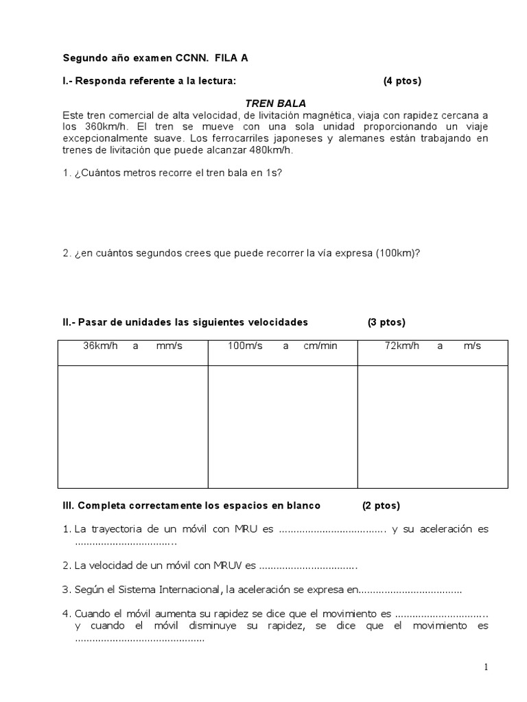 1. ¿Cuántos metros recorre el tren bala en 1s?