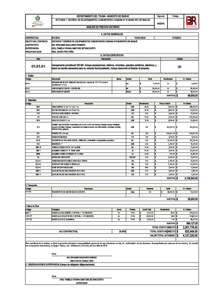 Análisis de Costos Equipamientos Ibagué