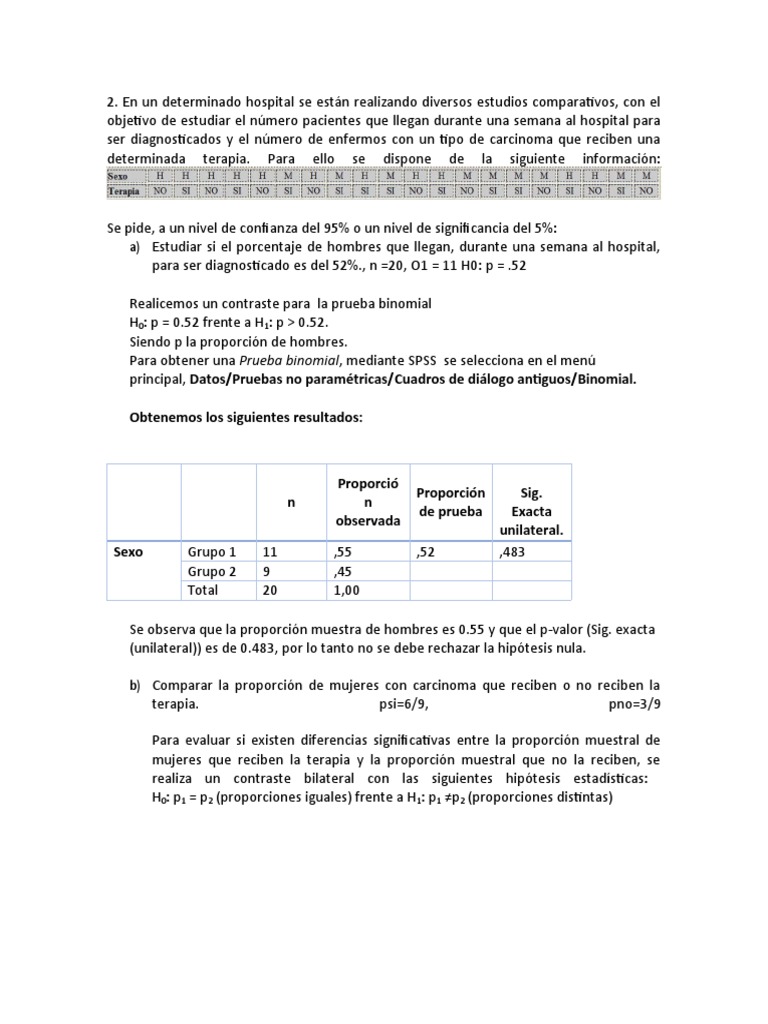 a) Estudiar si el porcentaje de hombres que llegan, durante una semana al hospital,