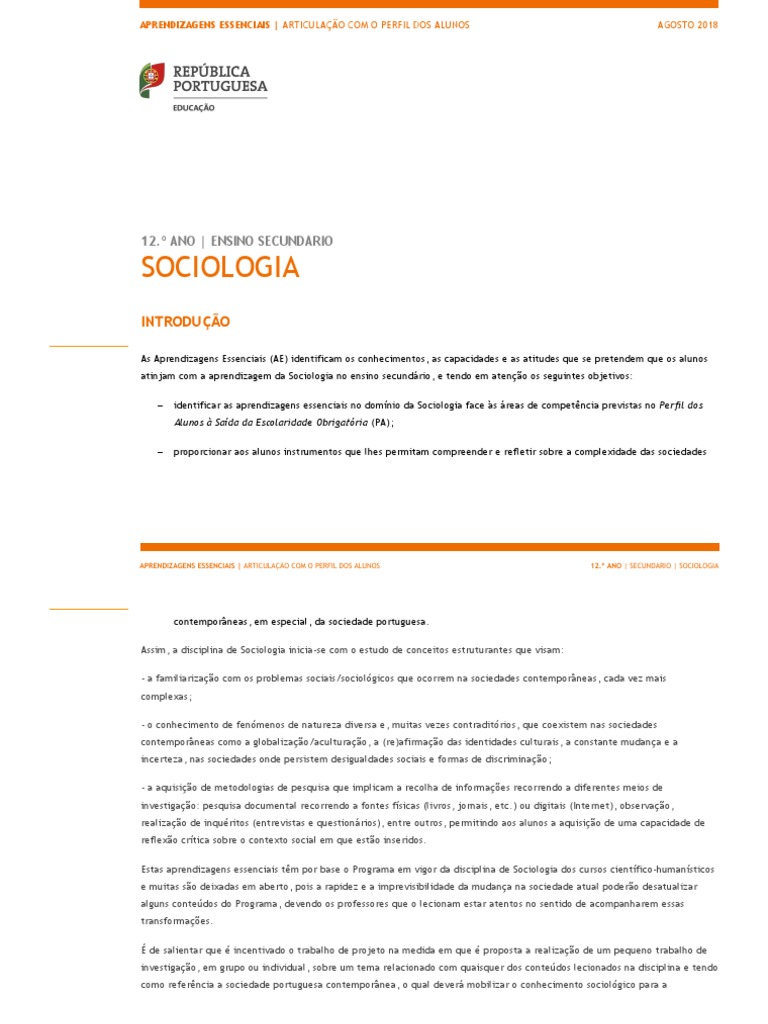 Estas aprendizagens essenciais têm por base o Programa em vigor da disciplina de Sociologia dos cursos científico-humanísticos