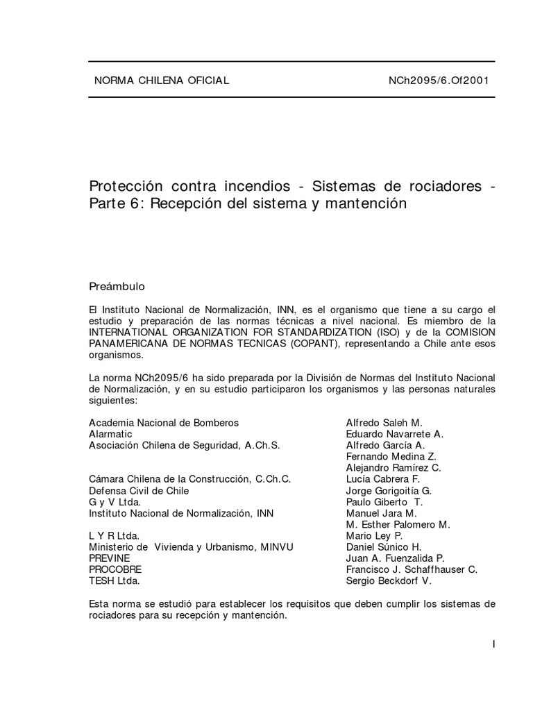 La norma NCh2095/6 ha sido preparada por la División de Normas del Instituto Nacional