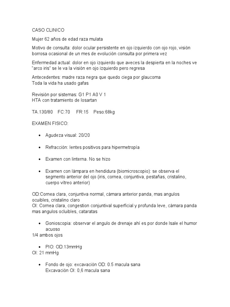 (10º Angulo iridocorneal cerrado) predisposición ojo derecho a glaucoma
