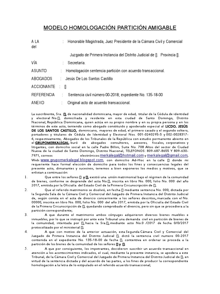 MODELO HOMOLOGACIÓN PARTICIÓN AMIGABLE