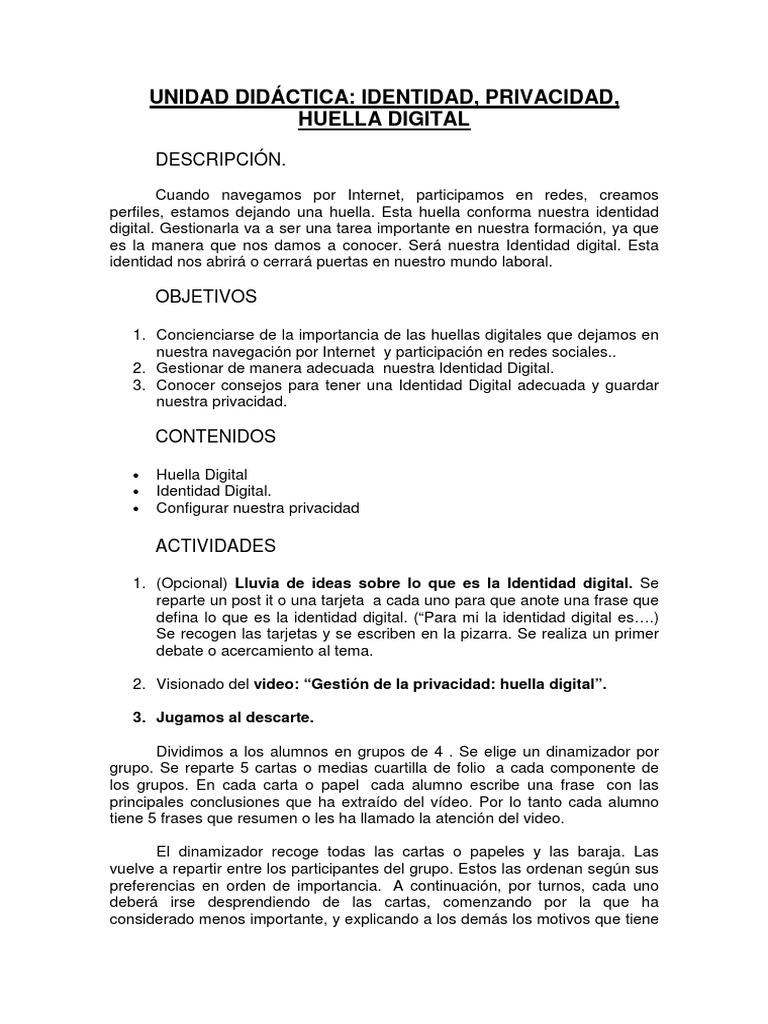 UNIDAD DIDÁCTICA: IDENTIDAD, PRIVACIDAD,