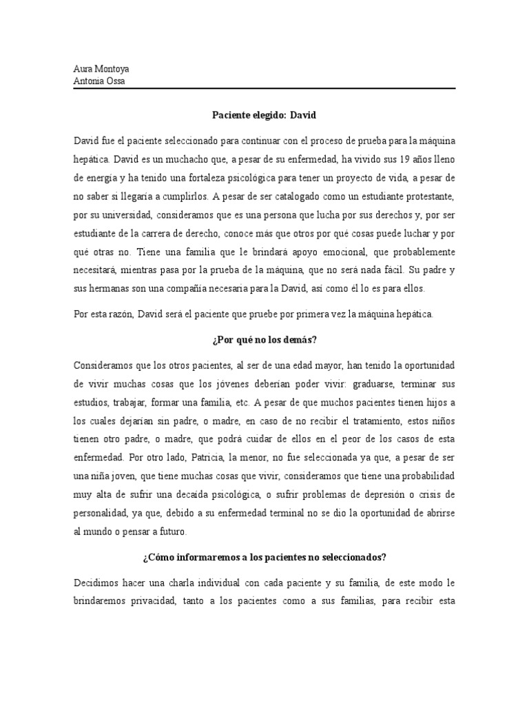 David fue el paciente seleccionado para continuar con el proceso de prueba para la máquina