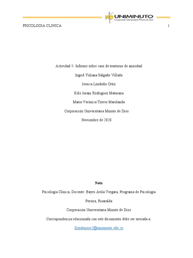 Actividad 5- Informe sobre caso de trastorno de ansiedad