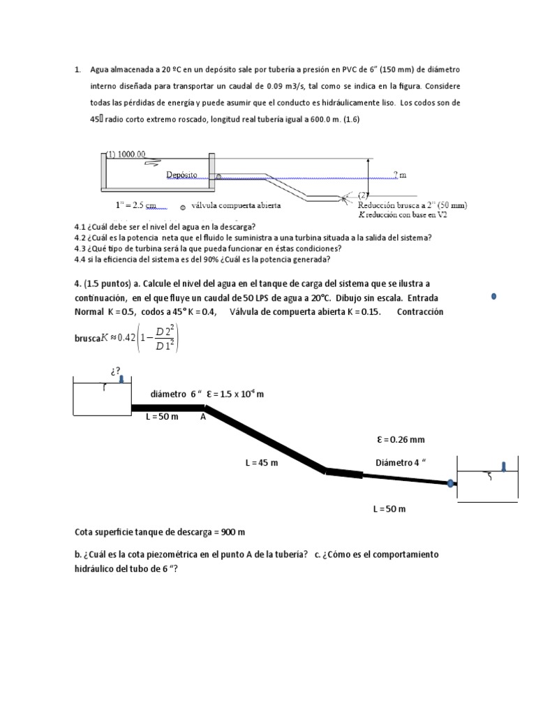 4. (1.5 puntos) a. Calcule el nivel del agua en el tanque de carga del sistema que se ilustra a