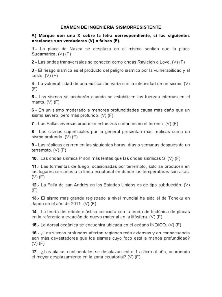 terremoto. (V) (F)