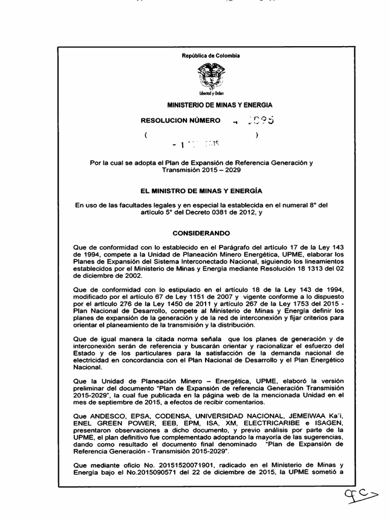 2015-2029" elaborado por la Unidad de Planeación Minero Energética -UPME, anexo