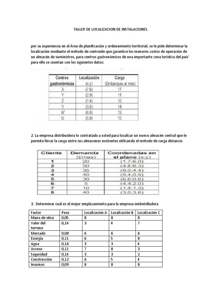 TALLER DE LOCALIZACION DE INSTALACIONES.