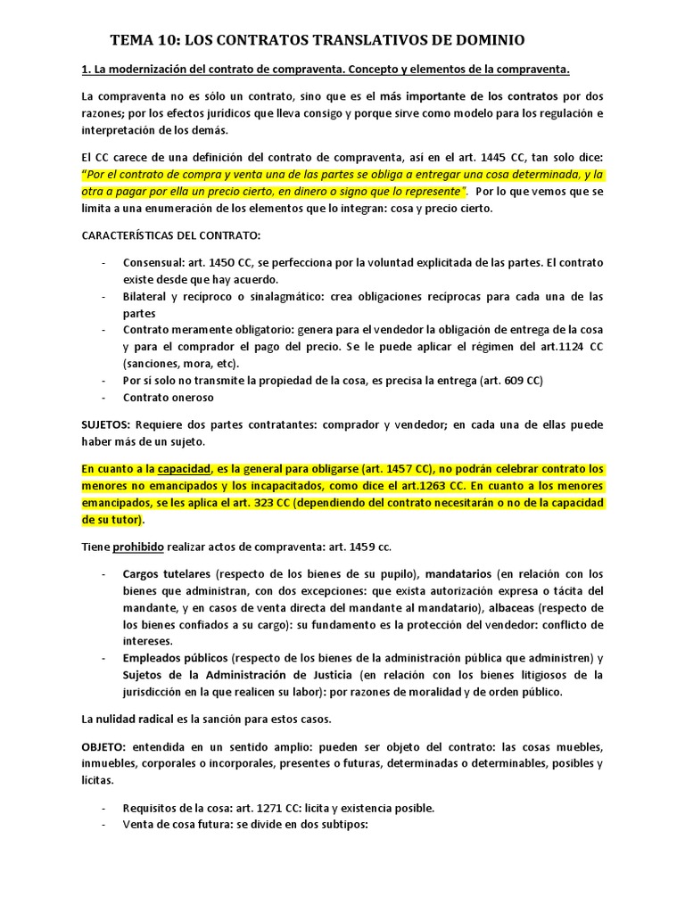 TEMA 10: LOS CONTRATOS TRANSLATIVOS DE DOMINIO