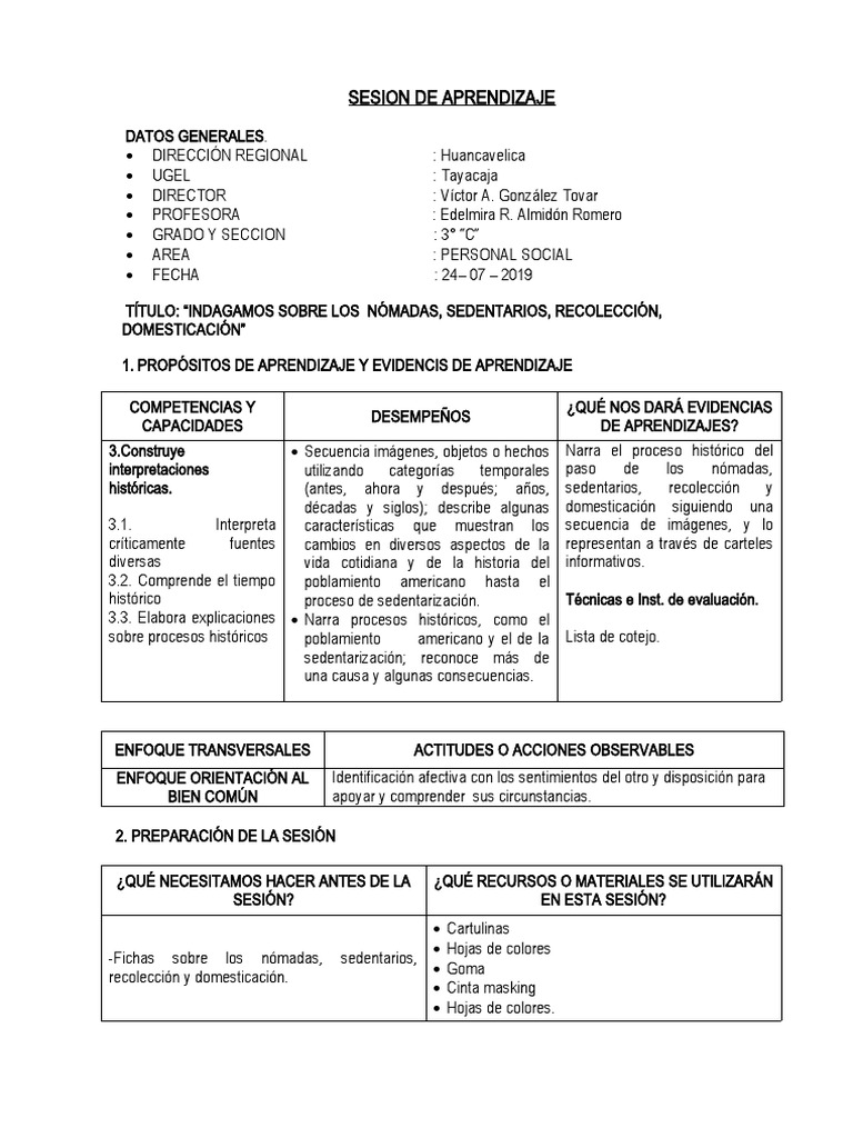 1. PROPÓSITOS DE APRENDIZAJE Y EVIDENCIS DE APRENDIZAJE