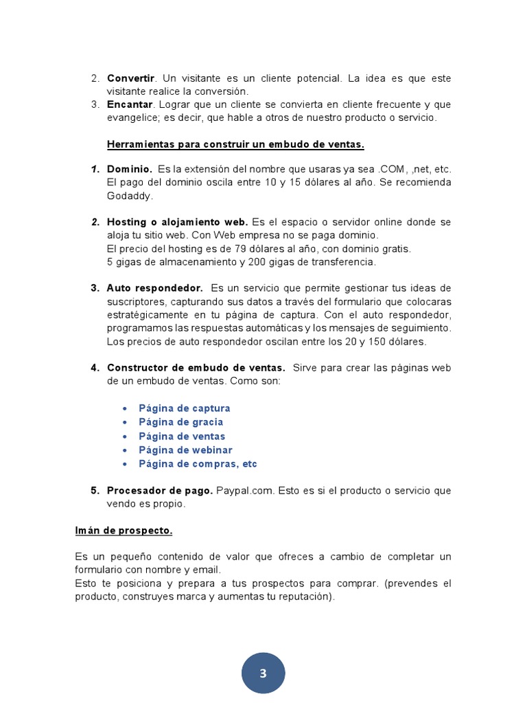 de un embudo de ventas. Como son: