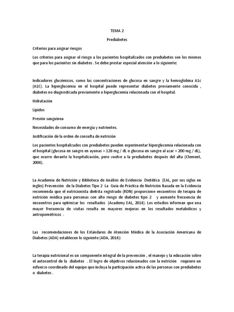Diabetes (ADA) establecen lo siguiente (ADA, 2014):