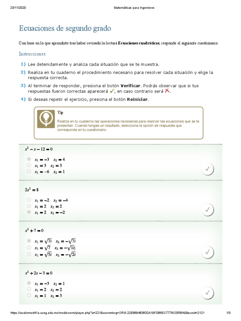 23/11/2020 Matemáticas para Ingenieros