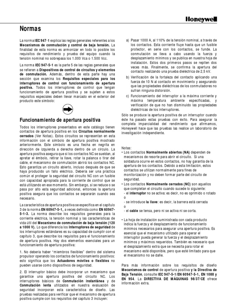 La norma IEC 947-5-1 es la parte 5 de las reglas generales que veces más. Finalmente, se confirma la apertura del