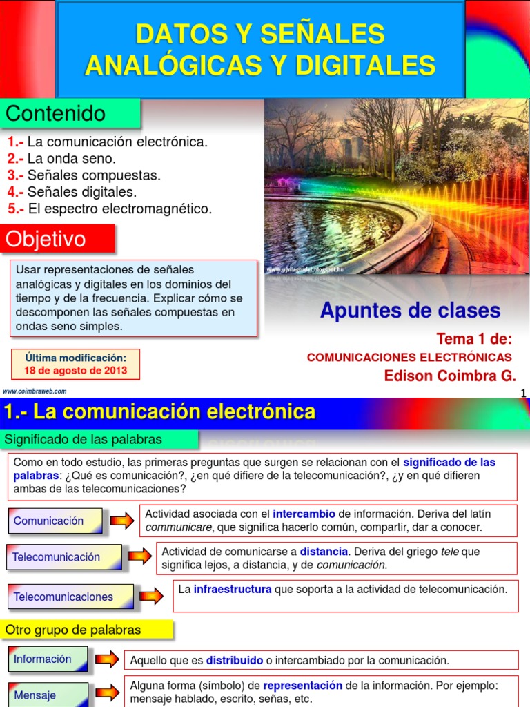 [Link] Para transmitir datos, primero se convierten a señales electromagnéticas. 5
