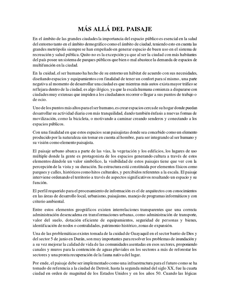 Por la cual el paisaje se convierte en un elemento de revolución urbana donde aplica acciones de