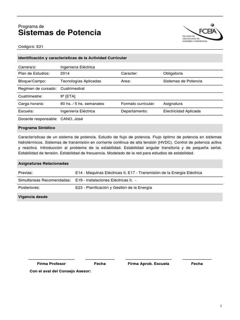 Bloque/Campo: Tecnologías Aplicadas Area: Sistemas de Potencia