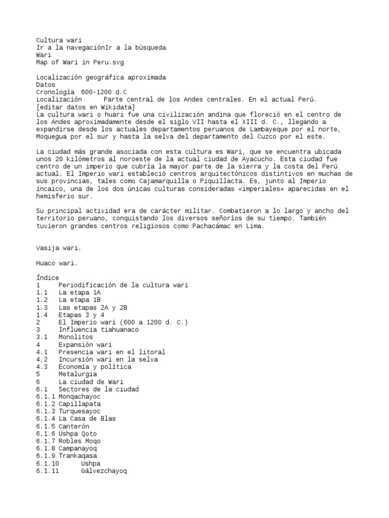 Wikcionario tiene definiciones y otra información sobre cultura wari.
